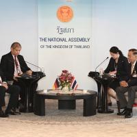 เอกอัครราชทูตสหพันธ์สาธารณรัฐเยอรมนีประจำประเทศไทย กล่าวขอบคุณประธานสภาผู้แทนราษฎรที่ให้การต้อนรับอย่างอบอุ่น พร้อมชื่นชมความสัมพันธ์ระหว่างกันที่มีมาอย่างยาวนาน โดยเอกอัครราชทูตฯ ยินดีที่จะส่งเสริมความสัมพันธ์กับไทยในทุก ๆ ด้าน พร้อมแสดงความยินดีที่ประเทศไทยได้ผ่านพ้นการเลือกตั้งจนสามารถจัดตั้งรัฐบาลและรัฐสภา ซึ่งเป็นไปด้วยดี ปัจจุบันเยอรมนีได้เข้ามาลงทุนในไทยเป็นจำนวนมาก ทั้งนี้ รัฐบาลเยอรมนีได้มีนโยบายกระจายฐานการผลิตออกไปยังภูมิภาคต่าง ๆ เพื่อลดความเสี่ยงจากการพึ่งพาประเทศใดประเทศหนึ่งมากเกินไป ซึ่งเยอรมนีได้บทเรียนมาจากการพึ่งพาพลังงานจากรัสเซียเป็นหลัก จนได้รับผลกระทบเมื่อเกิดความขัดแย้งระหว่างรัสเซียกับยูเครน